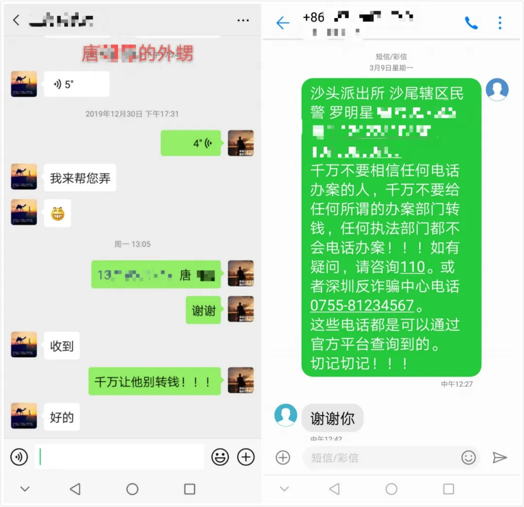 3月9日上午,唐先生也接到了一通詐騙來電。民警在接到預警后,立即趕到唐先生住所,發(fā)現(xiàn)唐先生并不在住所,而且手機處于關(guān)機狀態(tài)。爭分奪秒時刻,民警通過其老鄉(xiāng)找到了唐先生的外甥,成功聯(lián)系上了在外地的唐先生。原來,唐先生接到了詐騙電話,對方詢問唐先生是否需要貸款,表示他們可以用非常簡單的手續(xù)幫忙貸到款,前提是需要先交保證金。就在唐先生猶豫不決的時候,接到了民警和外甥的電話,避免了可能造成的損失。