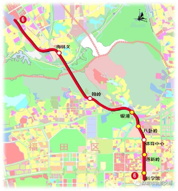 地鐵6號(hào)線二期線路自深圳北站預(yù)留高架橋工程引出,途徑龍華、福田、羅湖三區(qū),終于科學(xué)館站。線路途徑科學(xué)館、通新嶺、體育中心、八卦嶺、銀湖、翰嶺、梅林關(guān)7個(gè)站點(diǎn),線路全長(zhǎng)約11.8公里,包括7站7區(qū)間,換乘車站4座??膳c已運(yùn)營(yíng)的地鐵1號(hào)線、3號(hào)線、7號(hào)線、9號(hào)線實(shí)現(xiàn)換乘。截至目前,二期安裝裝修完成99%,附屬主體結(jié)構(gòu)基本完成。
