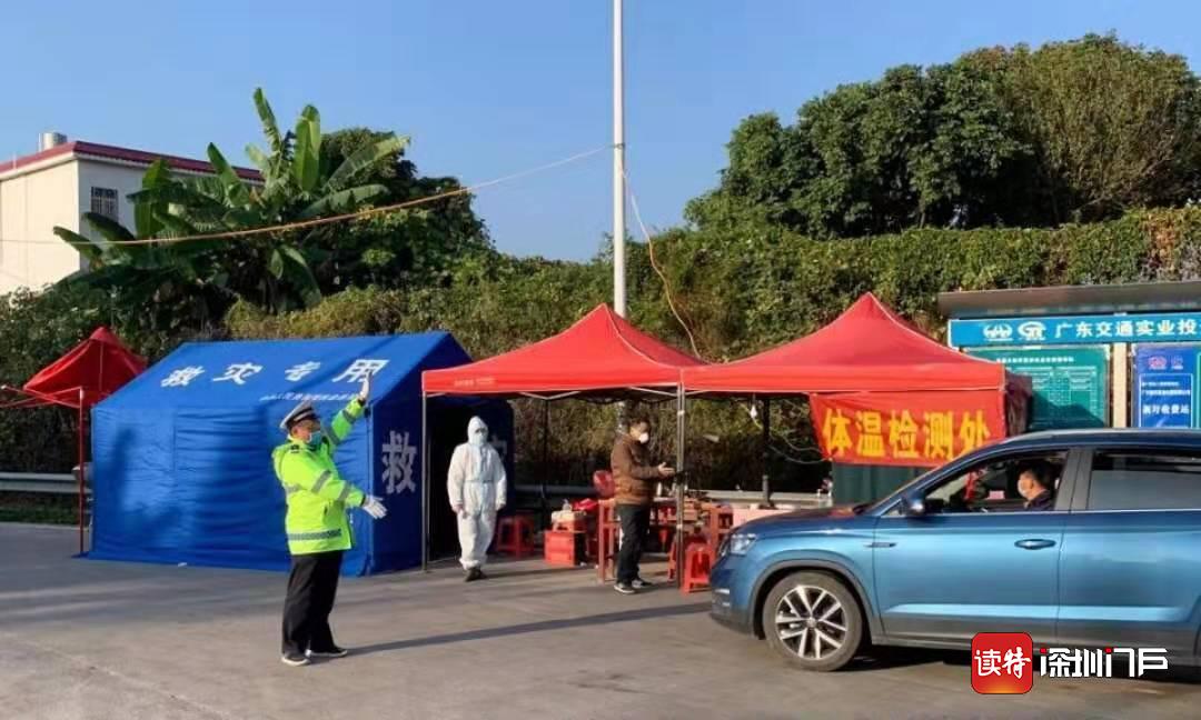 1月25日,深圳設置在全市市際公路入口處的49個入深車輛交通聯(lián)合檢疫點正式啟用,由深圳交警、派出所、衛(wèi)生防疫等部門和基層街道人員組成的檢查小組,24小時全天候聯(lián)勤輪班值守,按照“逢車必檢、逢人必檢”要求,對所有入城車輛和司乘人員進行信息核查登記和體溫檢測,及時安置有發(fā)熱等癥狀的旅客,嚴守深圳城門第一關(guān)。