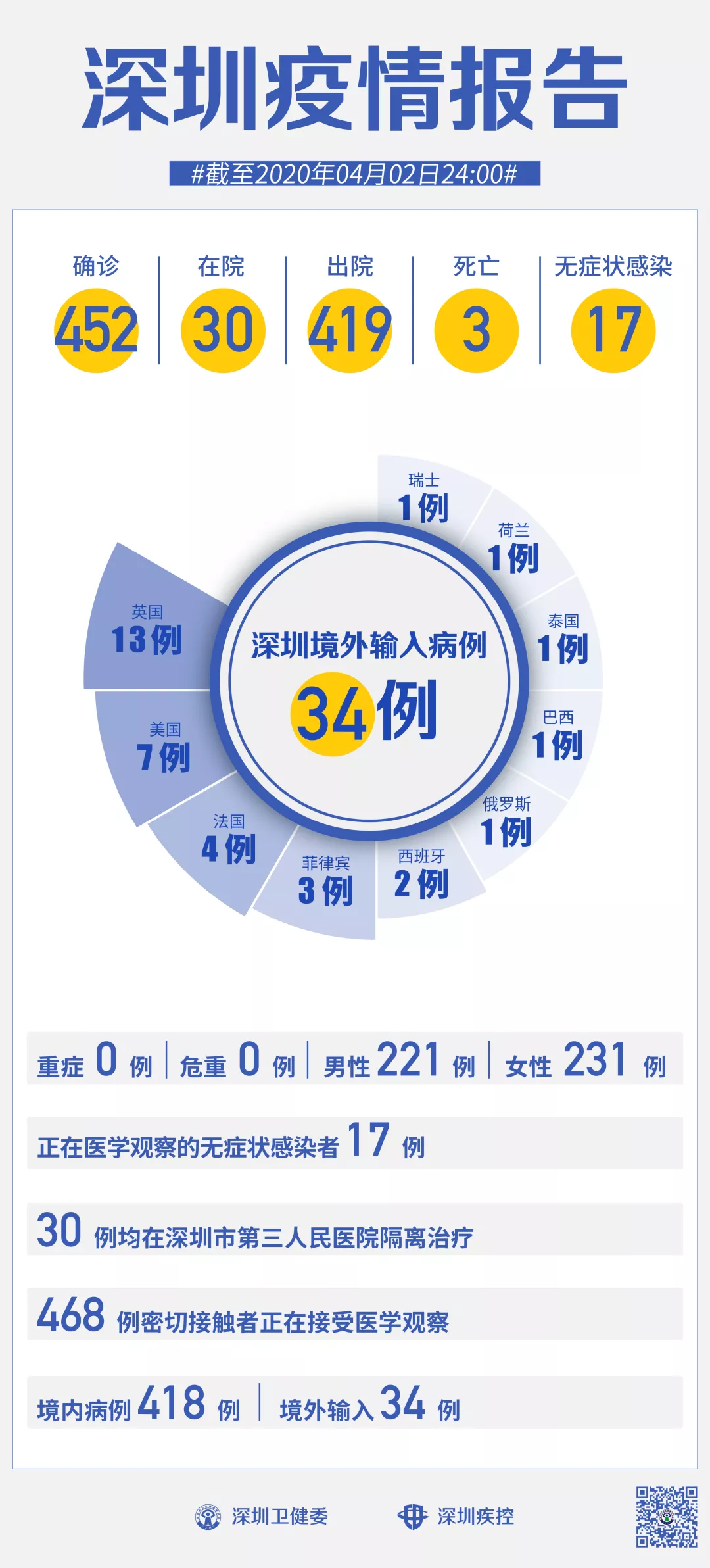 目前,死亡3例,累計出院419例。30例確診病例均在深圳市第三人民醫(yī)院隔離治療。