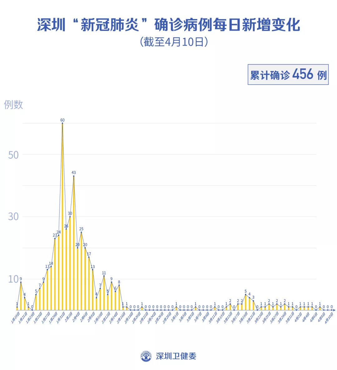 截至4月10日24時,深圳累計(jì)報告新冠肺炎病例456例。
