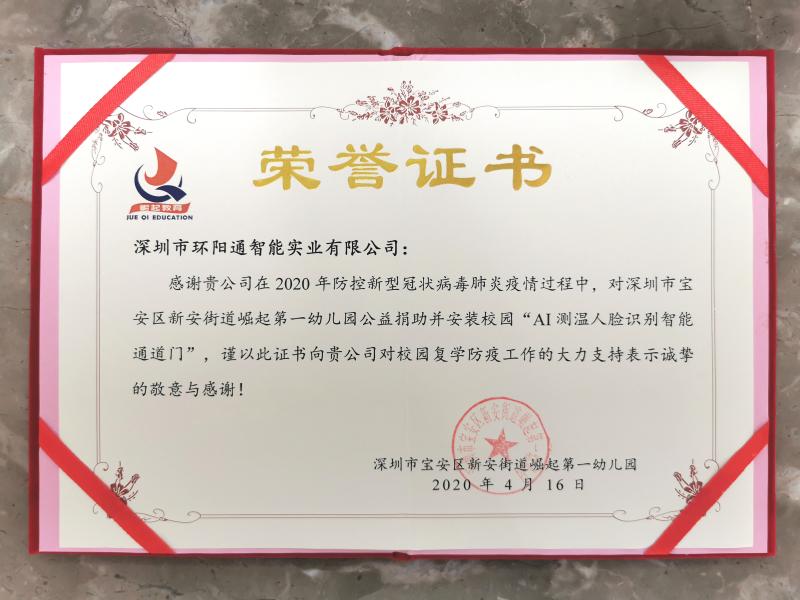 4月16日下午,深圳市環(huán)陽通智能實業(yè)有限公司(以下簡稱“大陽智通集團” )向崛起教育集團的深圳市寶安區(qū)崛起誠信實驗學校和深圳市寶安區(qū)崛起第一幼兒園捐贈多套防疫測溫人臉識別通道,并舉辦公益捐助活動,助力學校全面復學。