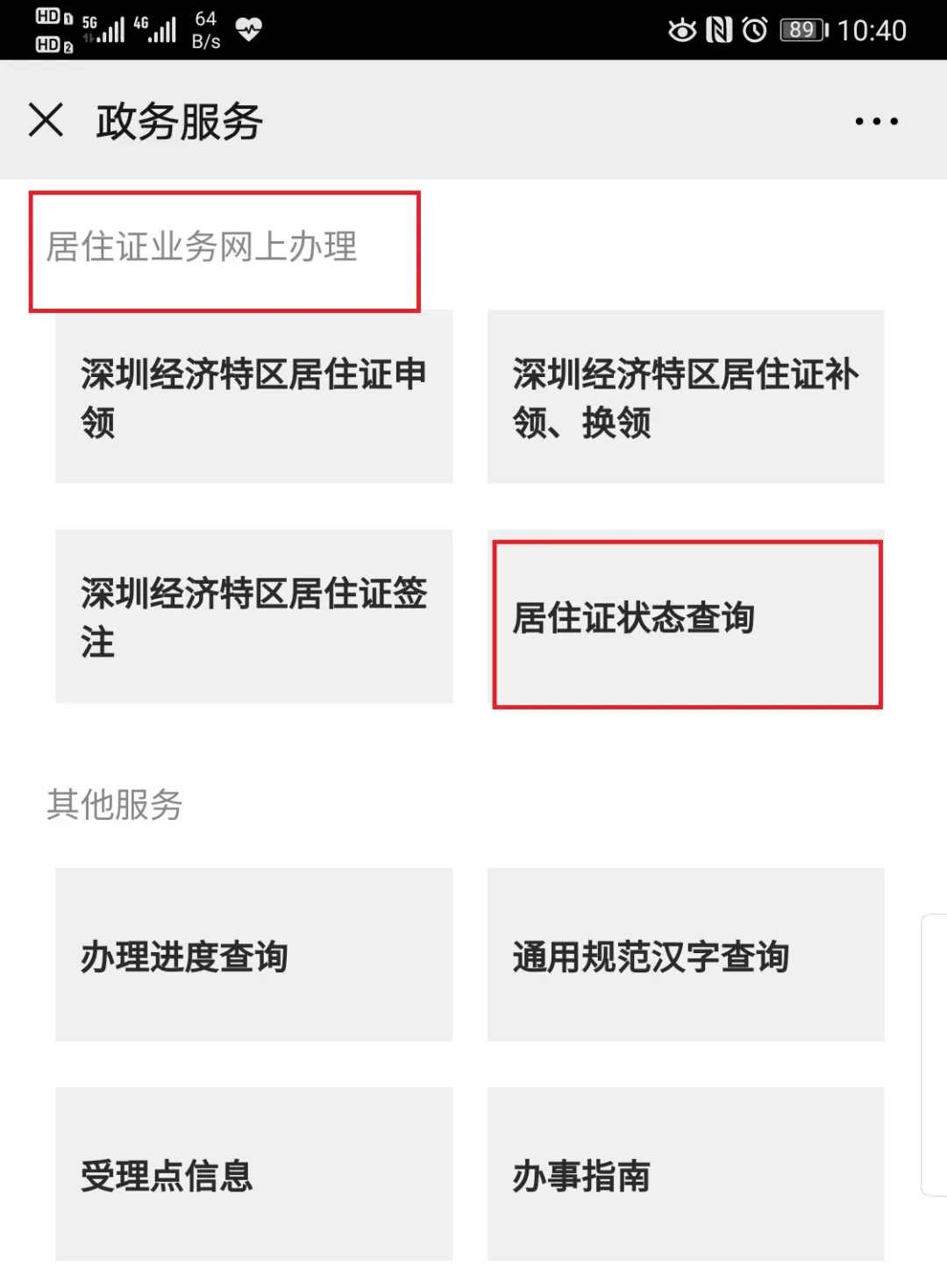 2、點擊“居住證業(yè)務(wù)網(wǎng)上辦理”-“居住證狀態(tài)查詢”