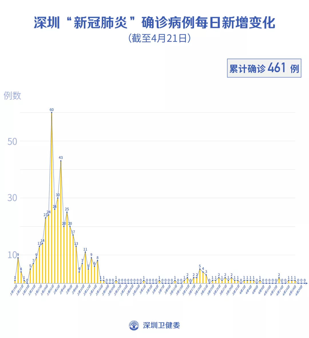 ??截至4月21日24時,深圳累計報告新冠肺炎病例461例。4月21日當天新增出院6例。