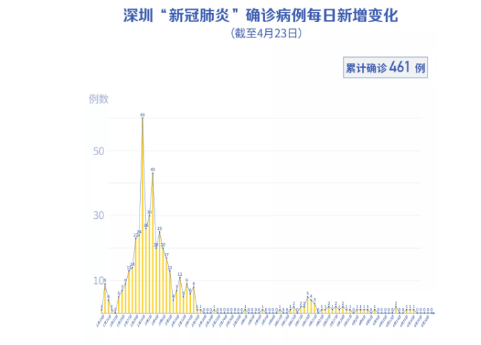 截至4月24日24時,深圳累計報告新冠肺炎病例461例。4月24日當天新增出院1例。