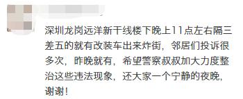 近期,深圳交警接到了許多來自市民的投訴,稱部分路段夜間經(jīng)查有人駕駛改裝車“炸街”,噪音擾民。