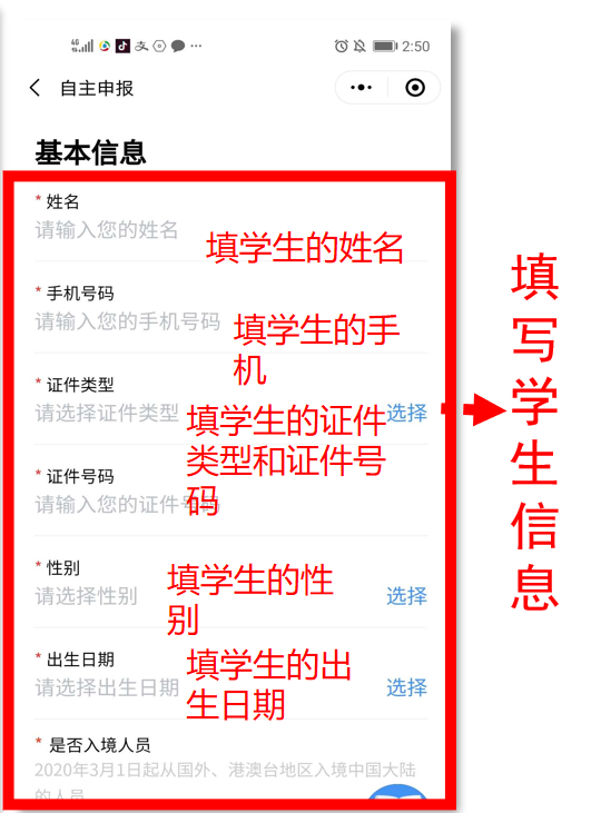 ②完成后系統(tǒng)提示進(jìn)行學(xué)生登記,進(jìn)入學(xué)生登記后列表,若沒有學(xué)生的信息,需要為學(xué)生進(jìn)行自主申報。方式為:點(diǎn)擊首頁自主申報,按照系統(tǒng)提示為學(xué)生完成申報。