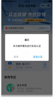 ①在首頁開學(xué)專區(qū)點(diǎn)擊“學(xué)生登記”,若家長之前未進(jìn)行自主申報和實(shí)名認(rèn)證,系統(tǒng)將彈出提示,請家長本人先完成自主申報和實(shí)名認(rèn)證。