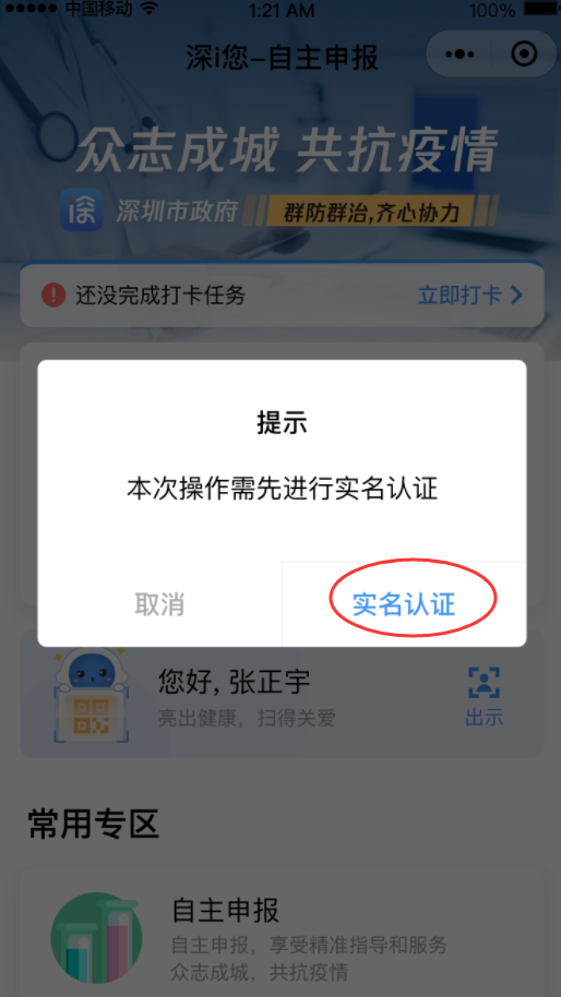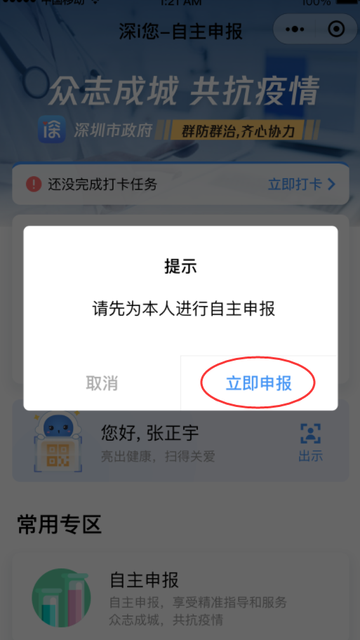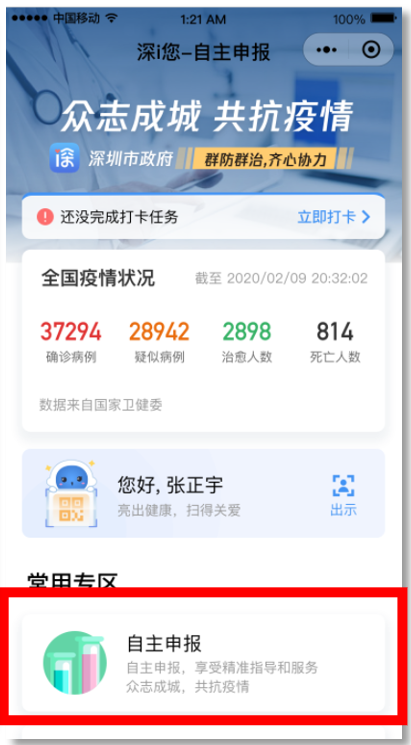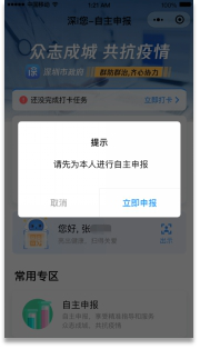 第二步:點(diǎn)擊底部菜單欄“健康申報”-“深i您”進(jìn)入申報系統(tǒng)。