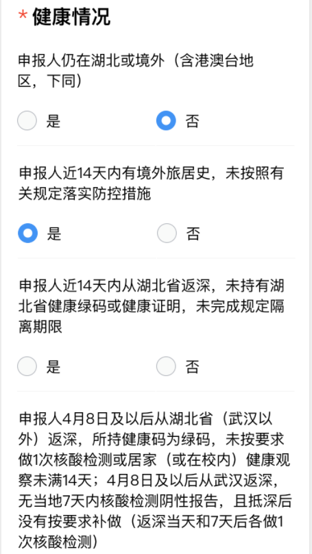 見圳客戶端·深圳新聞網(wǎng)2020年5月2日訊 深圳初三高三的學(xué)長學(xué)姐們已經(jīng)返校了,非畢業(yè)班的學(xué)弟學(xué)妹們接下來也將陸續(xù)返校。據(jù)深圳市教育局消息,5月2日(今天)開始,師生要在“深i您-自主申報”平臺的開學(xué)專區(qū)進(jìn)行健康信息申報,符合條件的才可以返校。