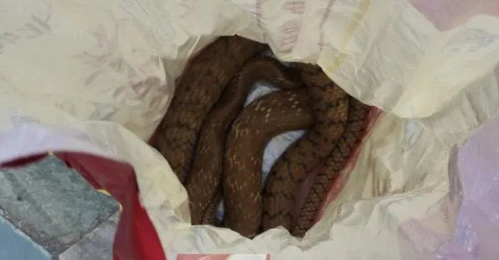 最近,兩條體型碩大的蛇突然在蓮花山公園人行道旁邊的草叢出沒(méi),隨后,一名公園內(nèi)的保安人員徒手捕捉了兩條蛇。