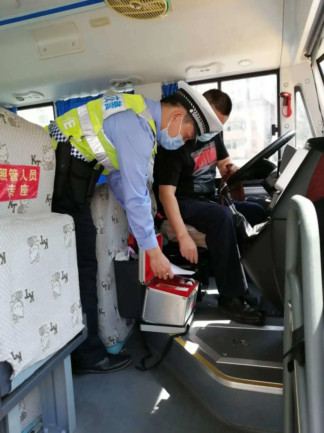 檢查校車車況及安全裝置,是否落實“每個座位一條安全帶”、配備行駛記錄功能的衛(wèi)星定位裝置、干粉滅火器、急救箱和照管人員座椅(位)、應(yīng)急出口和應(yīng)急錘(逃生錘)等安全設(shè)備、噴涂放大牌號和統(tǒng)一顏色、粘貼標識等。