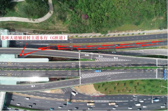 G匝道(北環(huán)大道輔道轉(zhuǎn)主道東行)航拍圖