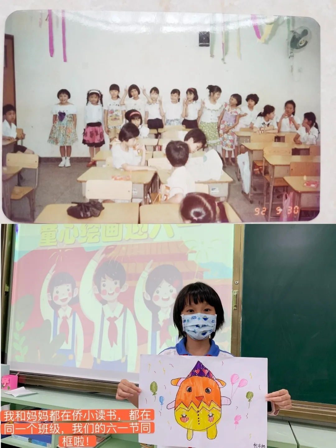 在這快樂的節(jié)日里,我也讓媽媽和我分享了她記憶中的六·一,她好好思考了一會兒說:"還是非常巧的,記憶最深的六·一,也是和你同歲的那一年,那是我在重慶老家過的最后一個(gè)六·一。記得當(dāng)日穿上了最漂亮的衣服,戴上了紅領(lǐng)巾,早早就去了學(xué)校,在簡單的慶祝活動后,就由老師帶領(lǐng)成績優(yōu)秀的同學(xué)到公社的禮堂去看慶祝表演活動,從學(xué)校走到公社要一個(gè)多小時(shí),大家一邊走一邊唱《快樂的節(jié)日》,非常的歡樂,感覺自己好似真的變成小鳥了,在會場里每位同學(xué)都收到了一個(gè)驚喜的小禮包,三十幾年過去現(xiàn)在回想起來快樂的感覺仍很深刻!好似六·一的感覺就停頓在那個(gè)時(shí)候,后來在深圳過的六·一印象反而都模糊了?!?/p>