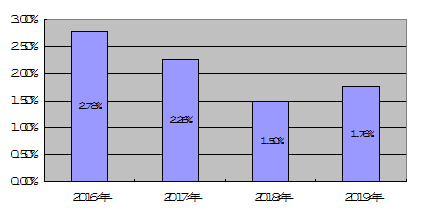 2016年-2019年深圳未成年罪犯占全部罪犯的比例