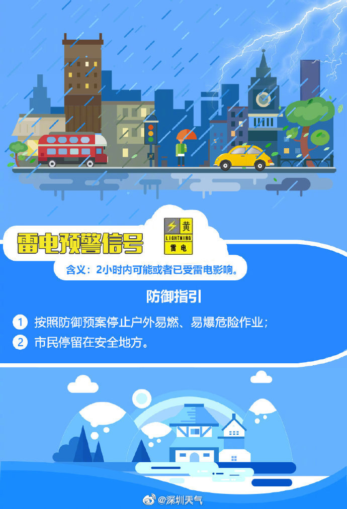 深圳市氣象臺于2020年06月05日11時15分在全市發(fā)布雷電預(yù)警,預(yù)計2小時內(nèi)全市將受雷電影響,市民停留在安全地方;按照防御預(yù)案停止戶外易燃易爆危險作業(yè),并加強?;瘓鏊踩芾?。