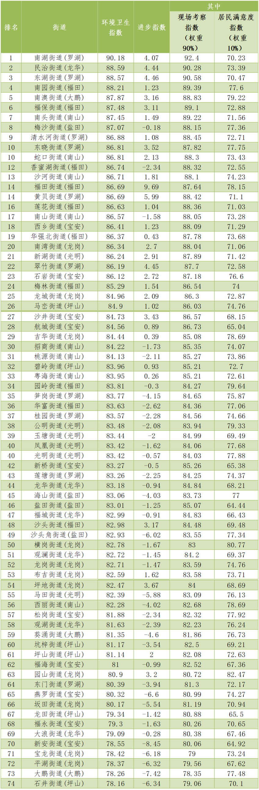 福田區(qū)羅湖區(qū)排名前二 福田街道進(jìn)步最大
