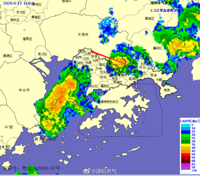 雷暴云團(tuán)已減弱,深圳市氣象臺于2020年06月13日12時30分在全市取消雷電預(yù)警。