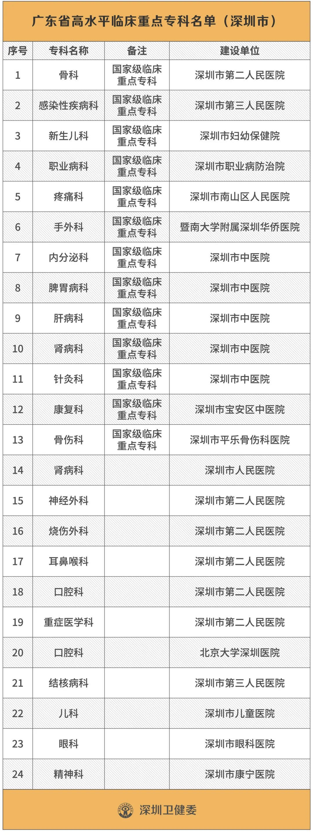 那是因為它們在另一份“省重點”名單上。這就是2019年由廣東省衛(wèi)健委公布的“廣東省高水平臨床重點??啤泵麊巍I钲谝还灿?4個??迫脒x,其中13個是國家衛(wèi)健委或國家中醫(yī)藥管理局認定的國家級臨床重點???。