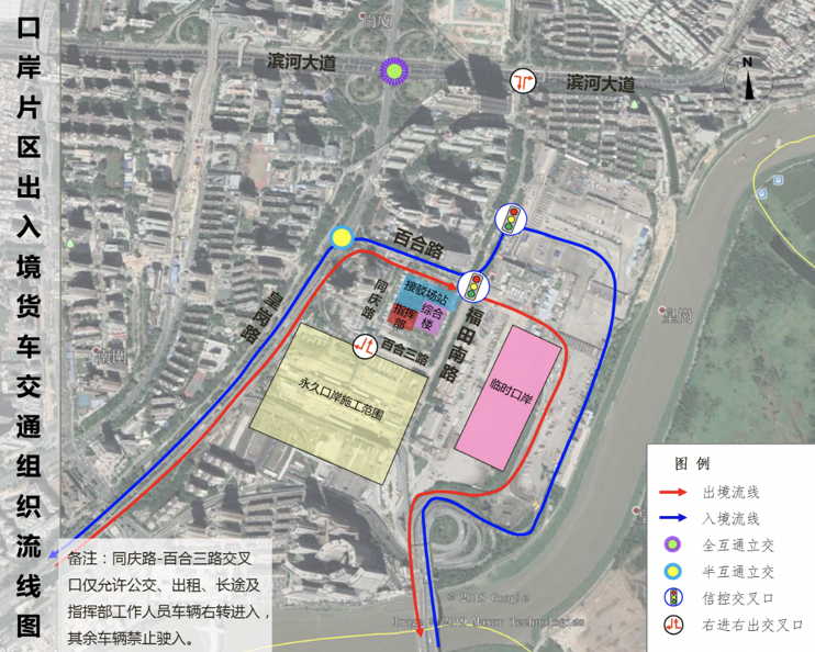 口岸片區(qū)社會車輛交通組織流線圖
