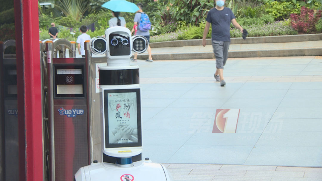 在蓮花山公園的南門口,安保人員戴著一頂智能頭盔,入園游客的體溫,可以實(shí)時(shí)顯示在眼前的屏幕上,一旦溫度達(dá)到37.3℃,就會(huì)發(fā)出警報(bào)。如果游客沒有戴口罩,門口的智能機(jī)器人也會(huì)提醒:“請(qǐng)您戴上口罩”。