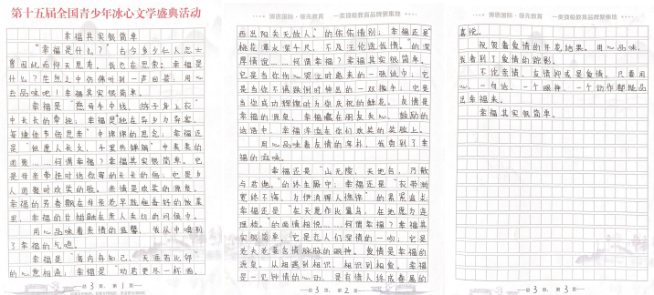 據(jù)活動組委會相關(guān)負責人介紹,“第十五屆全國青少年冰心文學盛典”以“2020文學之路,向上的力量”為主題,全程公益免費,設(shè)置了小學低年級組(1-3年級 )、小學高年級組(4-6年級 )、初中組、高中組、大學組、教師組、文學愛好者組等多個組別。值得注意的是,所有報名選手必須使用本次活動專用稿紙進行書寫創(chuàng)作。組委會將會根據(jù)選手報名提交的郵寄地址免費郵寄活動專用稿紙,每人僅限領(lǐng)取5張。選手完成手寫作品以后,將作品掃描或拍照發(fā)送到全國青少年冰心文學寫作指導中心深圳組委會指定郵箱szbxwx@126.com(冰心文學深圳)或gdbxwx@126.com(冰心文學廣東)。