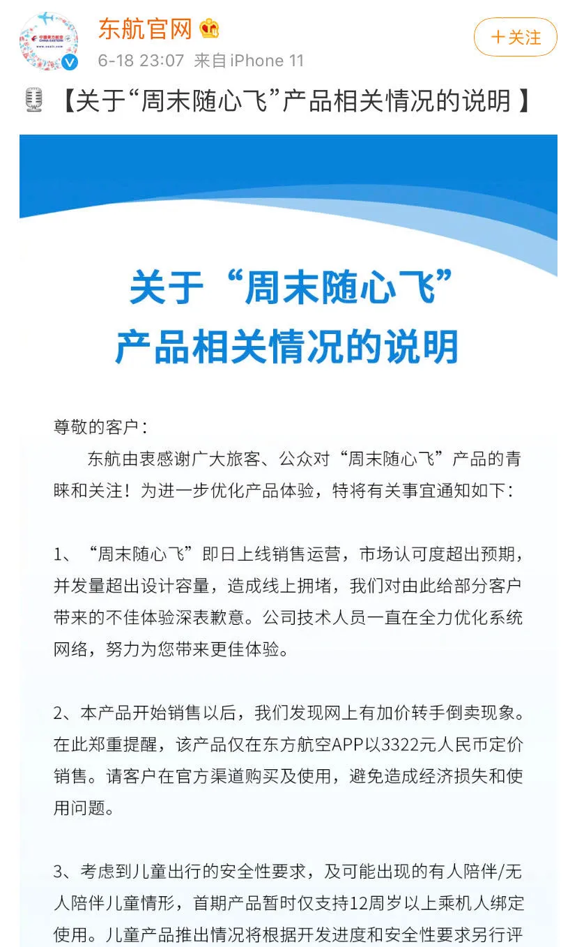 周末真能“隨心飛”?東航致歉!優(yōu)惠機票咋買?這些要知道
