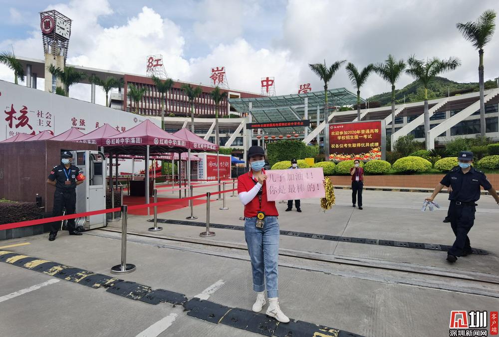 【紅嶺中學(xué)】門(mén)口正有一名家長(zhǎng)舉著“兒子加油!你是最棒的”標(biāo)語(yǔ)拍照留念