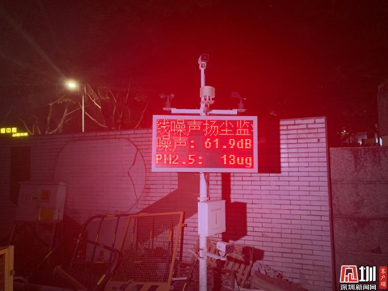 位于梅林中學(xué)附近的華強云產(chǎn)業(yè)園和鄰近的中糧金帝、恒利科創(chuàng)共同組成了一個工地集群,由于它們都是靠近住宅區(qū)屬于污染源中的二類區(qū),在噪聲分貝上有明確規(guī)定,白天不超過70分貝,夜間不超過55分貝。記者在現(xiàn)場看到,工地門口樹立著在線噪聲揚塵監(jiān)測系統(tǒng),對工地的噪聲污染和空氣污染進行實時數(shù)據(jù)監(jiān)控。