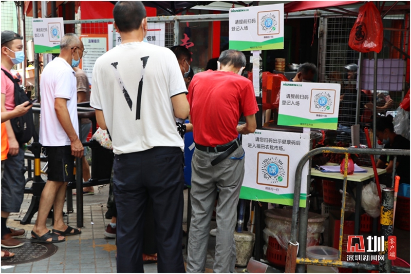 進入福田農(nóng)批市場需出示健康碼,測量體溫。
