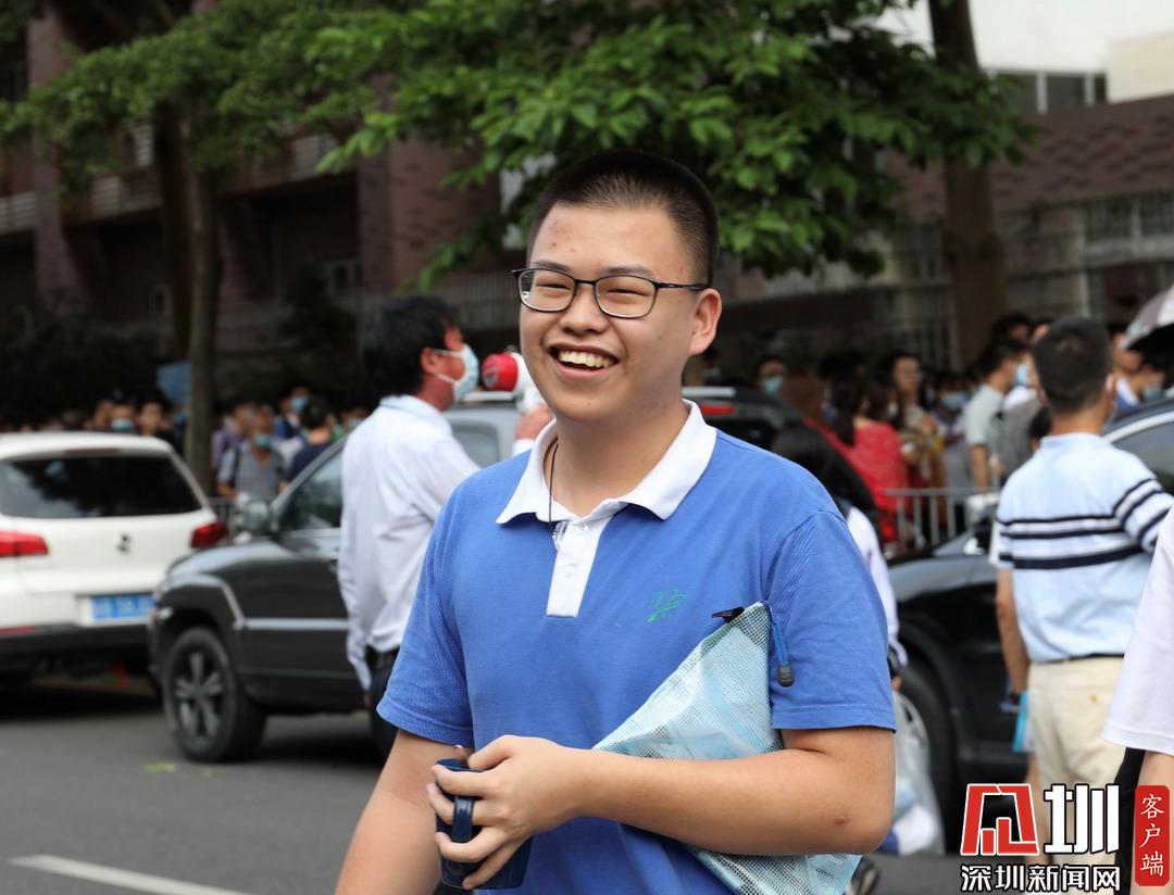深圳高級(jí)中學(xué)考點(diǎn)外考生自信滿滿走出考場(chǎng)。