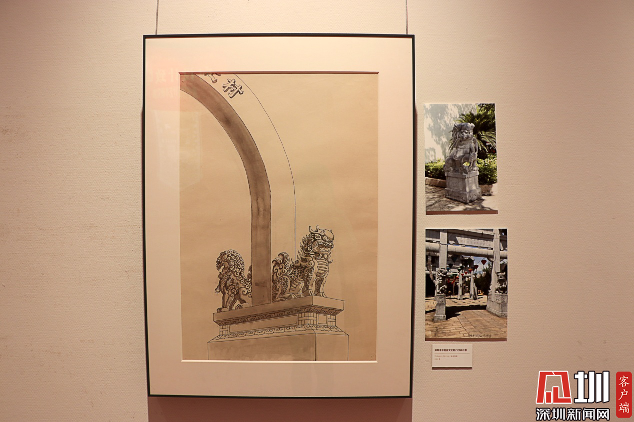 周令釗設(shè)計(jì)手稿——深圳民俗文化村入口門柱。