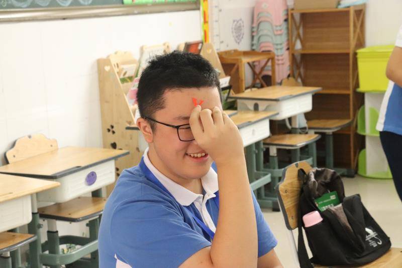 坪山同心外國語學(xué)校考生在腦門上貼上“紅色勝利標”,在考場上震懾你的對手。(焦子宇、耿超逸 文 圖)
