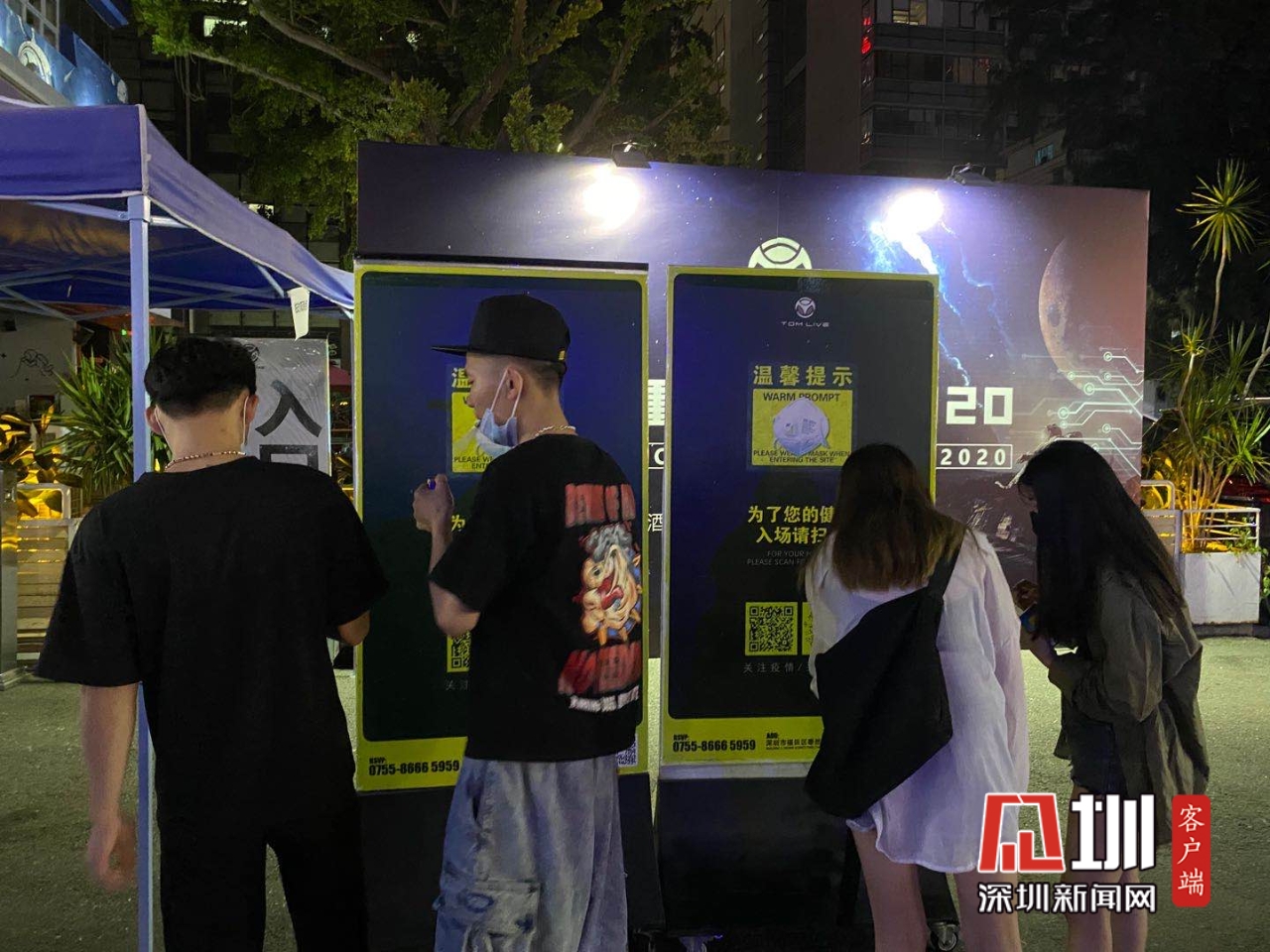 盛夏時節(jié)的夜晚,對于許多年輕人來說,尤其適合“燥起來”。酒吧、KTV、網(wǎng)吧等成為年輕人聚會的熱門場所。晚8點,位于福田車公廟的網(wǎng)紅酒吧TOMLIVE門口就已經(jīng)有許多人排隊。酒吧負責人告訴直播記者,“酒吧防疫管控措施非常嚴格,進店消費需掃碼憑碼通過溫控門進入,并且佩戴手環(huán),手環(huán)可作為憑證,出去后再回來則無需重復掃碼?!币咔槠陂g,消費者都十分注意保持距離,盡量避免聚集。