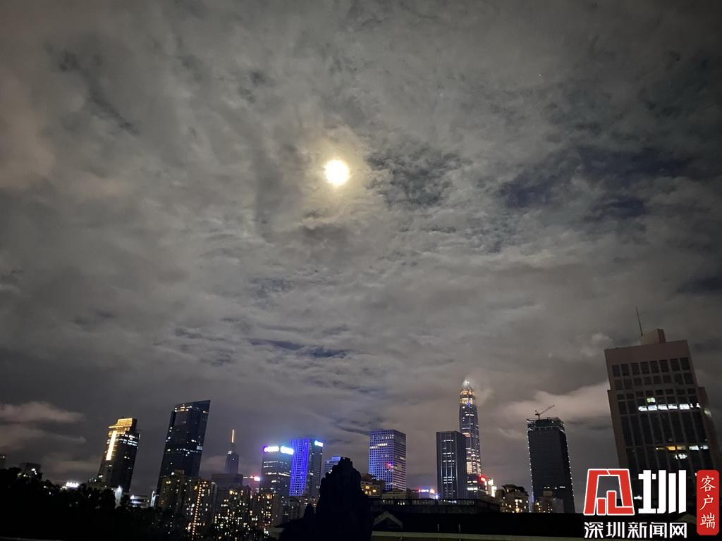 8月3日當(dāng)晚,深圳降雨暫歇,月亮也露出笑容。當(dāng)晚月亮升起時刻為19:06,不少深圳網(wǎng)友都拍到了圓月,并分享到社交平臺上。