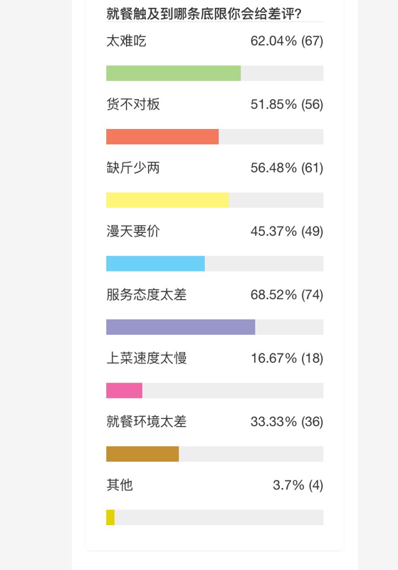 用餐后做出評價,是消費者的基本權(quán)利。針對“就餐差評”的問題,深圳新聞網(wǎng)昨天發(fā)起了網(wǎng)友投票。結(jié)果,有69.52%的網(wǎng)友表示,他們曾經(jīng)在用餐后給過差評。在給出差評的原因中,“服務(wù)態(tài)度差”、“太難吃”高居前兩名。對商家提出中肯的批評與監(jiān)督,是每個消費者享有的基本權(quán)利,中肯的評價不僅是商家進步的動力,也讓更多網(wǎng)友能夠快速篩選定位商家,從而促進行業(yè)的良性發(fā)展。