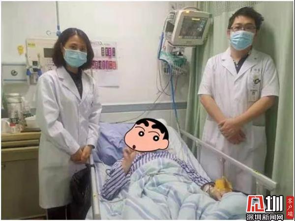王威回憶:“做了7組心肺復蘇后,劉先生似乎曾有輕微的反應。我后來也沒敢松懈,一直堅持做到醫(yī)護人員來到現(xiàn)場?!?/p> 病情危急 入院搶救后轉(zhuǎn)危為安 16:43分左右,羅湖醫(yī)院急診科醫(yī)護人員接到120指揮部出車通知后,以最快速度到達了現(xiàn)場,立即開始接手現(xiàn)場救治。當時,王威已經(jīng)為劉先生做了7分鐘心肺復蘇。醫(yī)護人員迅速評估劉先生生命體征,發(fā)現(xiàn)他仍無呼吸、無心跳,立即繼續(xù)心肺復蘇并即時進行心電監(jiān)護,建立靜脈通路,開放氣道、球囊輔助通氣并注射腎上腺素。心電監(jiān)護提示室顫,在除顫2次后,劉先生恢復了自主呼吸和心跳,被送往羅湖醫(yī)院急診科進一步救治。