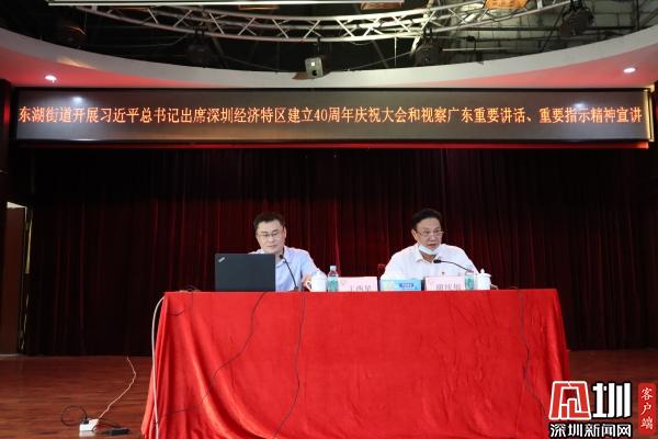 見圳客戶端·深圳新聞網(wǎng)11月26日訊(記者 劉晨 通訊員 魏官明 陳惠冰)11月26日下午,深圳市羅湖區(qū)東湖街道舉行習(xí)近平總書記出席深圳經(jīng)濟(jì)特區(qū)建立40周年慶祝大會和視察廣東重要講話、重要指示精神宣講報告會,活動特邀羅湖區(qū)委宣講團(tuán)成員、區(qū)發(fā)展研究中心黨組書記、主任王西星作主題宣講。 街道黨政領(lǐng)導(dǎo),街道各辦、中心業(yè)務(wù)負(fù)責(zé)人,各社區(qū)黨委書記、副書記,股份公司董事長,街道機(jī)關(guān)各黨支部及各社區(qū)黨建組織員、黨員共100余人參加了宣講活動?;顒佑山值傈h工委副書記、人大工委主任謝統(tǒng)敏主持。