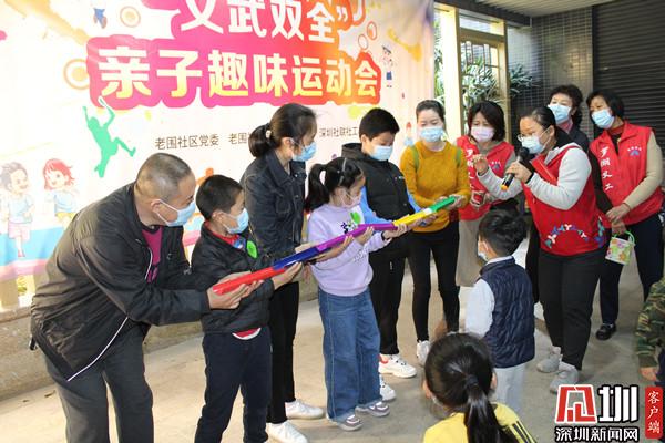 見圳客戶端·深圳新聞網(wǎng)2月1日訊(記者 劉嘉敏 通訊員 楊紀(jì)歐)今年過年不回家,要玩就在社區(qū)玩?!耙蛉攵础薄靶◎蝌秸覌寢尅薄傲璨ㄎ⒉健薄皩殞氈嘎贰边@些又好聽又好玩的游戲,是羅湖區(qū)桂園街道老圍社區(qū)黨群服務(wù)中心的社工為社區(qū)居民精心準(zhǔn)備的。1月30日上午,社區(qū)為鼓勵(lì)社區(qū)居民留深過年,專門開展了一場(chǎng)“文武雙全”親子趣味運(yùn)動(dòng)會(huì),吸引了眾多小朋友及其家長(zhǎng),12對(duì)親子來到現(xiàn)場(chǎng)。