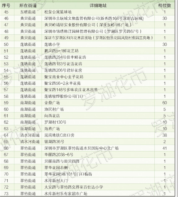 羅湖區(qū)共開設(shè)近500個花市鋪位,遍布全區(qū)10個街道,近40個社區(qū)。同時,羅湖區(qū)還特別制作了花市地圖,最大限度的方便市民就近購花。