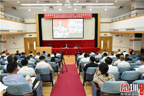 見圳客戶端·深圳新聞網(wǎng)4月8日訊(記者 劉嘉敏/文 見習記者 邱婕/圖)4月7日,羅湖區(qū)委理論學習中心組暨全區(qū)副局、正處級領導干部黨史學習教育專題研討班開班。此次研討班的主要任務是,以習近平新時代中國特色社會主義思想為指導,深入學習貫徹習近平總書記在黨史學習教育動員大會上的重要講話精神,認真落實黨中央決策部署和省委、市委工作安排,高標準、高質量推進黨史學習教育走深走實,進一步統(tǒng)一思想、提高認識,從黨的百年偉大奮斗歷程中汲取前進的智慧和力量,高質量推進“灣區(qū)樞紐、萬象羅湖”建設,以優(yōu)異成績迎接建黨100周年。區(qū)委書記羅育德作動員講話暨主題報告,區(qū)委副書記、區(qū)長劉智勇主持開班式。