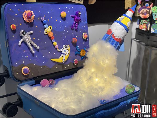 騎著小白兔在天上看四大名樓、把四大名樓帶到宇宙里、在四大名樓上面遇見天空之城……現(xiàn)場(chǎng),幾幅畫作吸引觀賞者駐留觀看?!皻v代文人墨客用千古名篇頌揚(yáng)四大名樓,而這個(gè)《中國(guó)四大名樓》系列作品,孩子們將與深圳共成長(zhǎng)的切身感受,與歷史畫卷中的四大名樓發(fā)生靈感碰撞,以簡(jiǎn)單的水墨畫表現(xiàn)形式,呈現(xiàn)出不可思議的藝術(shù)效果。”作品指導(dǎo)老師于雪在采訪時(shí)介紹說(shuō)道,這一系列的作品,是三四年級(jí)的孩子創(chuàng)作,身高沒(méi)有很高,但是作品的畫幅很大,而且用的材質(zhì)是宣紙,比較容易破,因此孩子們?cè)诶L畫過(guò)程中也學(xué)會(huì)了調(diào)整身體的位置和紙張比例,以及更加小心翼翼地保護(hù)自己的畫作,這也是他們創(chuàng)作中有趣的過(guò)程。