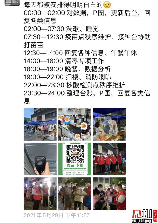 這是這段時(shí)間邱蜀鈞的一天的時(shí)間安排,白天對疫苗點(diǎn)進(jìn)行秩序維護(hù)、在接種臺(tái)協(xié)助打疫苗、整理轄區(qū)清零專項(xiàng)工作等,晚上去居民樓掃樓、進(jìn)行數(shù)據(jù)分析,回去之后整理臺(tái)賬,編輯公眾號(hào)傳達(dá)最新情況,是名副其實(shí)的全能型時(shí)間管理大師。