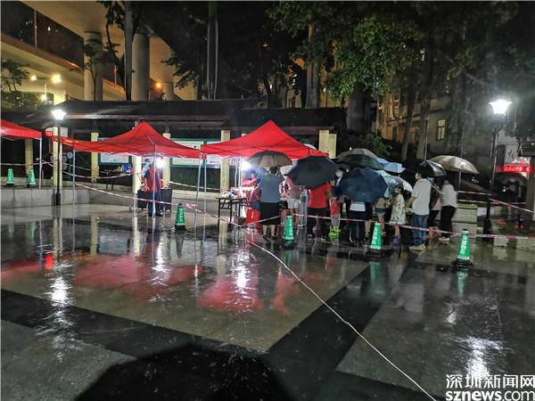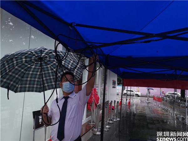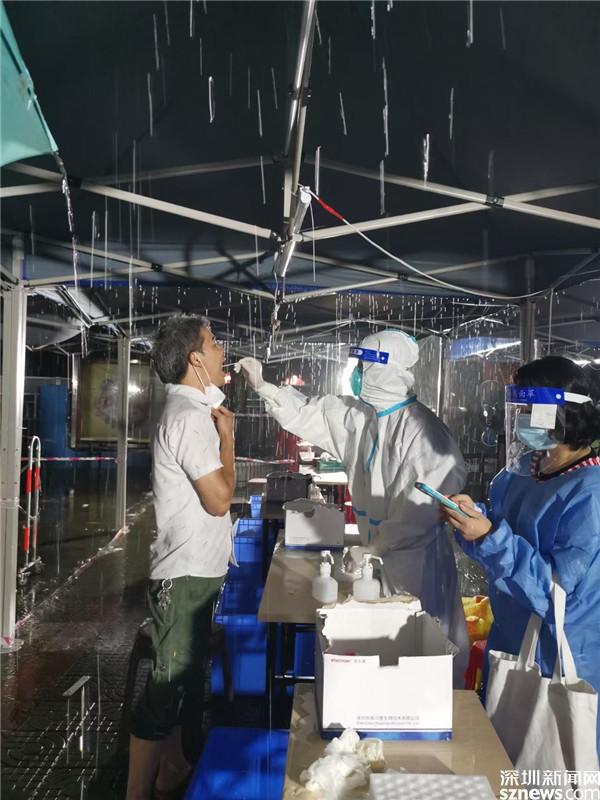讀特客戶端·深圳新聞網(wǎng)2021年6月21日訊(記者 李慧)6月21日晚及6月22日一早,深圳雷雨交加,深圳市氣象臺2021年06月22日07時(shí)10分在多個區(qū)域發(fā)布暴雨紅色預(yù)警,羅湖也包括其中。有那么一群人,嚴(yán)陣以待、逆雨迎風(fēng),堅(jiān)守在抗疫一線。記者到各核酸檢測點(diǎn)看到,醫(yī)護(hù)人員和社區(qū)義工們?nèi)匀幻爸L(fēng)雨,堅(jiān)守在核酸采集的崗位上。
