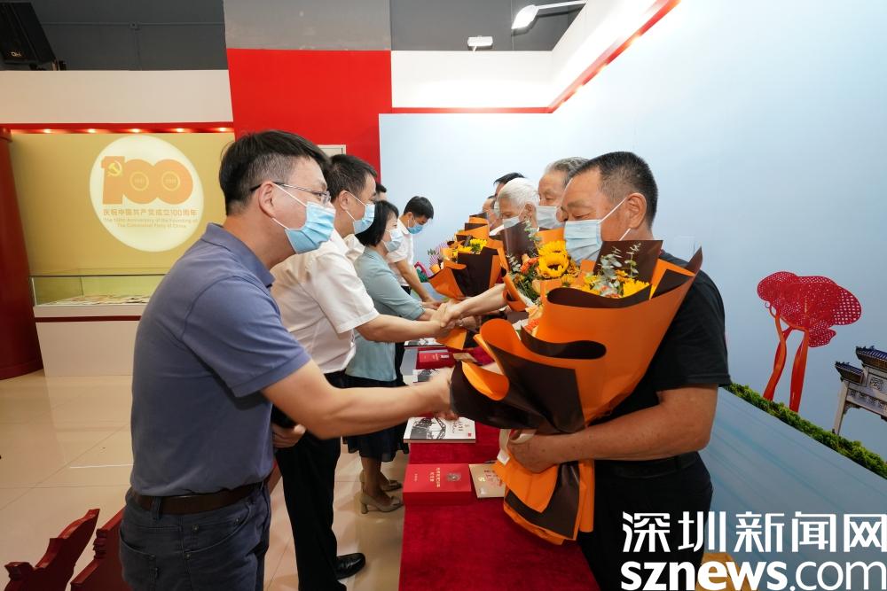 羅湖區(qū)委常委、宣傳部部長呂漫妮,羅湖區(qū)委組織部部務(wù)委員、人才工作局局長曹雙璽,羅湖區(qū)委宣傳部副部長、區(qū)文明辦主任張華嘉,深圳報業(yè)集團(tuán)副總經(jīng)理朱永峰,清水河街道黨工委書記魏剛,清水河街道黨工委副書記劉曉春等共同為展覽揭幕。部分老兵代表出席了本次活動, 并向嘉賓和學(xué)生代表簽名送書。開幕式后,羅湖區(qū)、清水河街道和深圳報業(yè)集團(tuán)領(lǐng)導(dǎo)為街道 " 光榮在黨 50 年 " 紀(jì)念章獲得者代表黨員頒發(fā)獎?wù)?,為街道辦 " 兩優(yōu)一先 " 榮譽(yù)獲得者代表頒獎。
