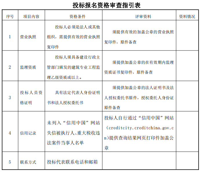 1.以上資格審查合格條件標(biāo)準(zhǔn)中如出現(xiàn)一處不符合要求,其投標(biāo)報名將不被接受;