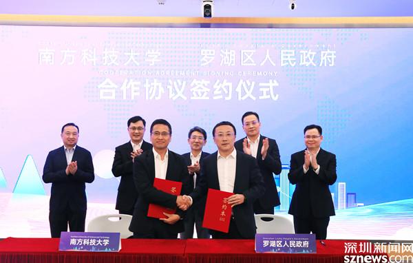 讀特客戶端·深圳新聞網(wǎng)2021年7月19日訊(記者 劉嘉敏)7月16日,羅湖區(qū)人民政府與南方科技大學(xué)(以下簡稱“南科大”)簽署合作協(xié)議。羅湖區(qū)常務(wù)副區(qū)長范德繁、南科大校長辦公會(huì)成員王蘇生分別代表羅湖區(qū)、南科大簽約。南科大校長薛其坤,市委組織部副部長張林,市委組織部部務(wù)委員、市人才工作局局長鄧曉俊,羅湖區(qū)委書記羅育德,區(qū)委副書記、組織部部長、政法委書記賴武共同見證。