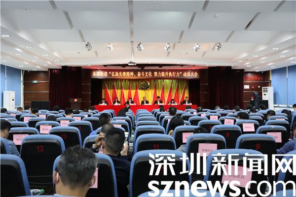 讀特客戶端·深圳新聞網(wǎng)2021年11月19日訊(記者 郭含笑 通訊員 黃貽凱)感恩奮進(jìn)跟黨走,緊鑼密鼓再出發(fā)。羅湖區(qū)第八次黨代會、區(qū)“兩會”的順利閉幕是一個(gè)結(jié)束,也是羅湖新征程、新使命、新奮斗的開始。為弘揚(yáng)羅湖光榮傳統(tǒng)、賡續(xù)羅湖血脈傳承,在街道全體黨員干部中形成憋足一口氣趕超奔跑、鉚足一股勁狠抓落實(shí)的風(fēng)氣,把先鋒精神、奮斗文化轉(zhuǎn)化為強(qiáng)大執(zhí)行力、踐行在奮斗新征程,11月19日下午,深圳市羅湖區(qū)東湖街道召開“弘揚(yáng)先鋒精神、奮斗文化 努力提升執(zhí)行力”動員大會。街道黨工委書記程時(shí)菊等處級干部,各辦、中心全體在編人員,各社區(qū)黨委書記、副書記、副站長、城管專干共100余人參加會議。