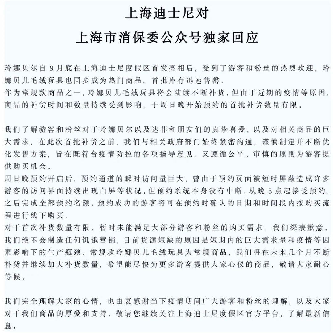 上海迪士尼回應:將加大補貨數(shù)量