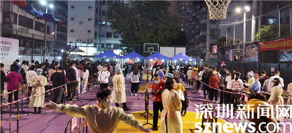 羅湖區(qū)審計局黨組書記黃吉南在新村社區(qū)防疫現(xiàn)場指導核酸檢測流程。